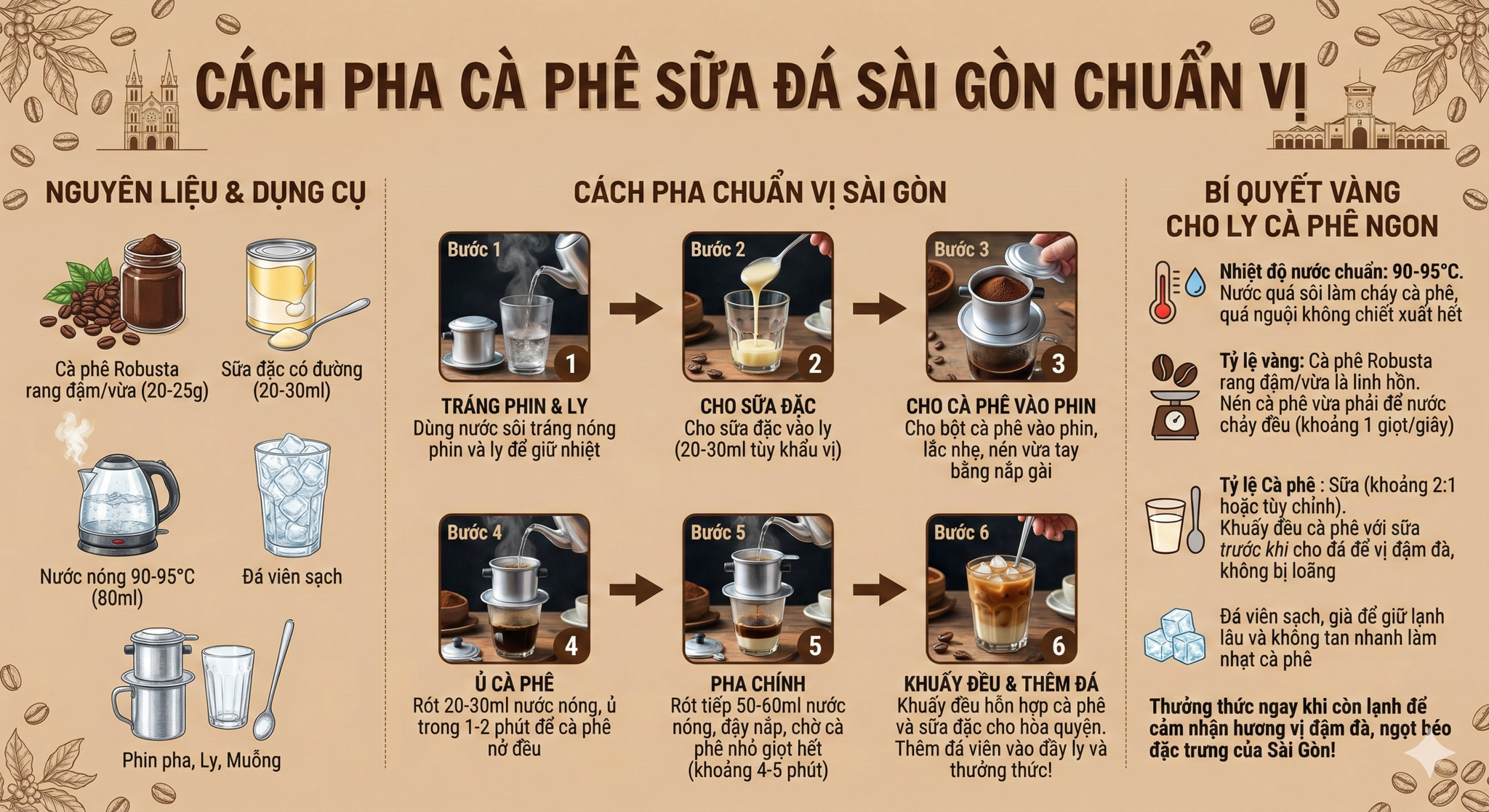 Ví dụ: Nano Banana Pro tạo với prompt: Tạo một infographic minh họa cách pha cafe sữa đá Sài Gòn bằng tiếng Việt, lưu ý đúng chính tả.