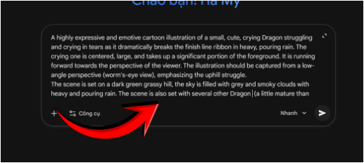 - Dán prompt vào khung nhập lệnh trên AI Gemini.