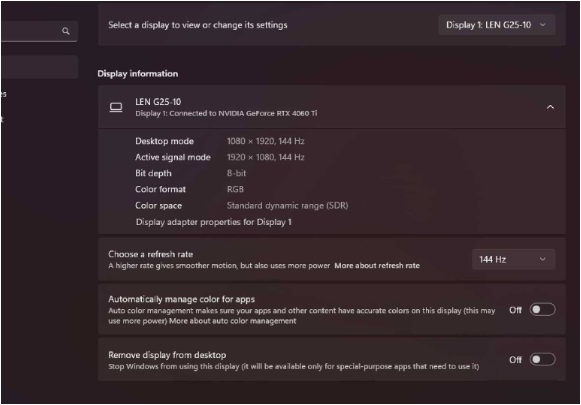 Một trong những nguyên nhân phổ biến khiến màn hình trông “không mượt” dù phần cứng tốt chính là tần số quét chưa được thiết lập đúng. Nhiều màn hình có khả năng hiển thị 75Hz, 144Hz hoặc cao hơn, nhưng Windows đôi khi mặc định ở mức 60Hz.