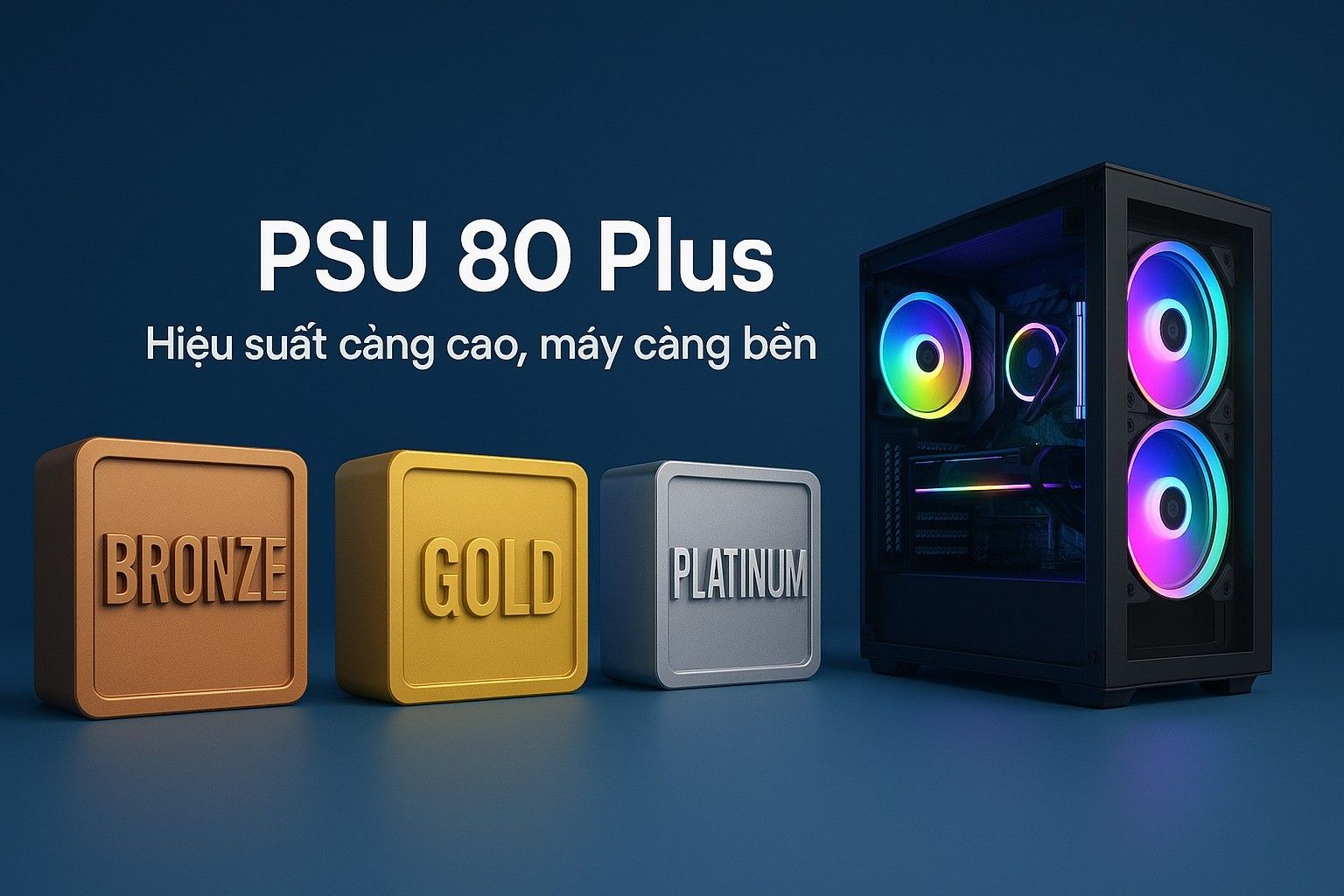 Khi build PC cho phòng net, ngoài CPU, GPU và RAM, còn rất nhiều yếu tố khác cần cân nhắc để đảm bảo dàn máy vận hành ổn định và bền bỉ. Nguồn điện (PSU) là một trong những thành phần quan trọng nhất. Chọn PSU đạt chuẩn 80 Plus Bronze trở lên sẽ đảm bảo hiệu suất chuyển đổi điện năng tốt, cung cấp đủ công suất cho CPU và GPU hoạt động liên tục mà không bị sụt áp hoặc quá tải. Việc sử dụng nguồn chất lượng cao giúp giảm rủi ro hỏng linh kiện và kéo dài tuổi thọ hệ thống.