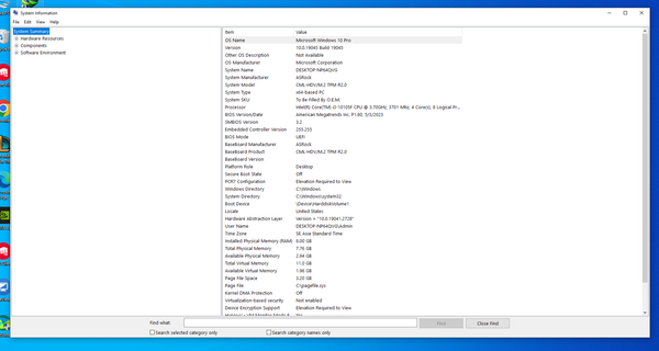 - Components: Danh sách chi tiết các thành phần như card đồ họa (Display), ổ cứng (Storage), RAM, và nhiều thông tin khác.
