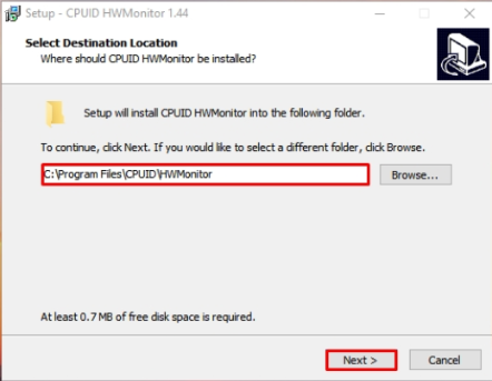 2.Cửa sổ hiện ra, chọn thư mục lưu trữ phần mềm (theo mặc định là C:\Program Files\CPUID\HWMonitor).