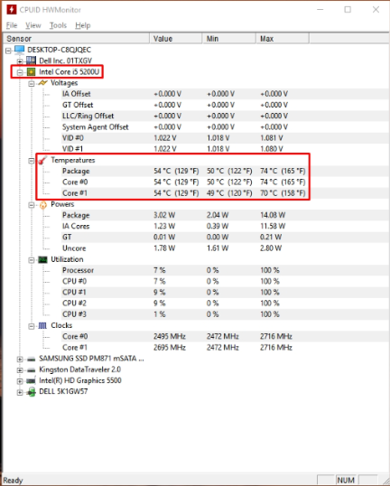 Bước 2: Kiểm tra nhiệt độ CPU trên HWMonitor