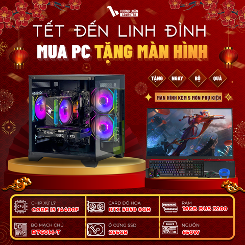 Lưu ý: Cấu hình và hình ảnh mang tính chất minh họa cho sản phẩm, có thể thay đổi theo thời điểmCấu Hình PC Gaming VLC_TM025 - Intel Core I5 14400F, RTX 5050 8GB, RAM 16GB | Mua PC tặng Màn Hình Hấp Dẫn!
